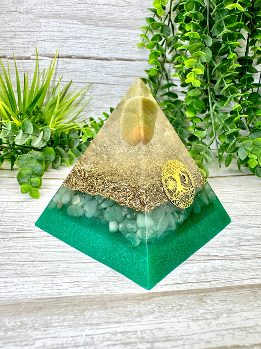 ABUNDANCE - Beginners Series - Orgonite Pyramid - EMF Protector - Green Opal, Green Aventurine with Brass Metal
