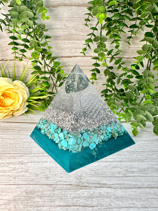 INTUITION - Beginners Series - Orgonite Pyramid - EMF Protector - Tree Agate and Turquoise with Aluminum Metals