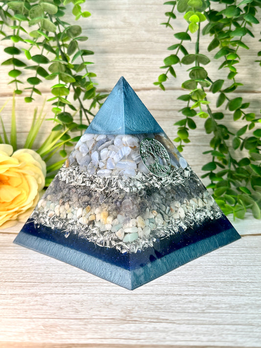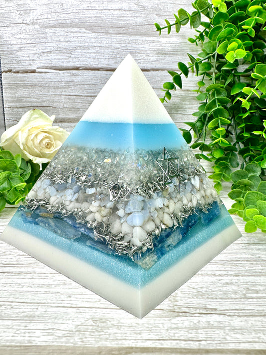 CRISTINA - Orgonite Pyramid - EMF Protector - Opalite, Blue Lage Agate, White Milky Quartz, Blue Kyanite and Aluminum Metals