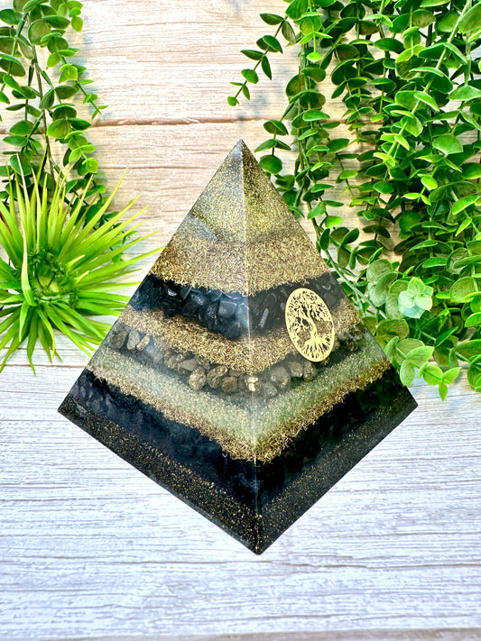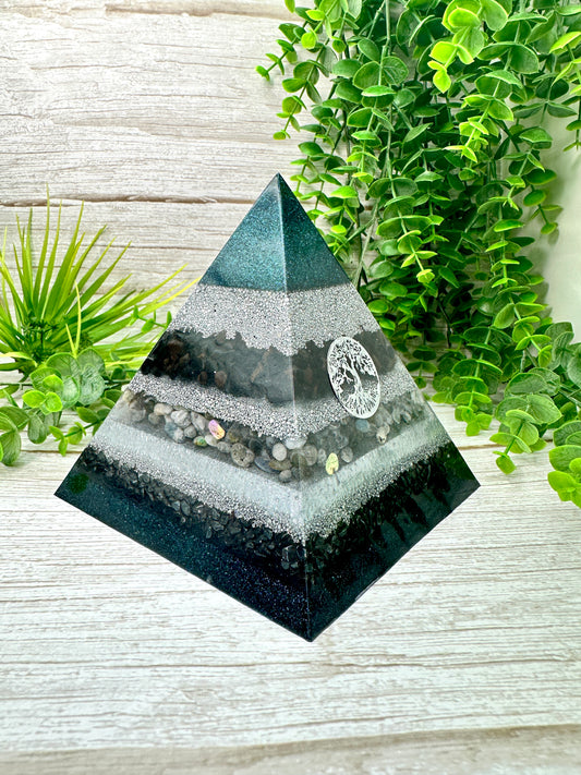 JASON - Orgonite Pyramid - EMF Protector - Black Tourmaline, Labradorite, Hematite and Aluminum Metals