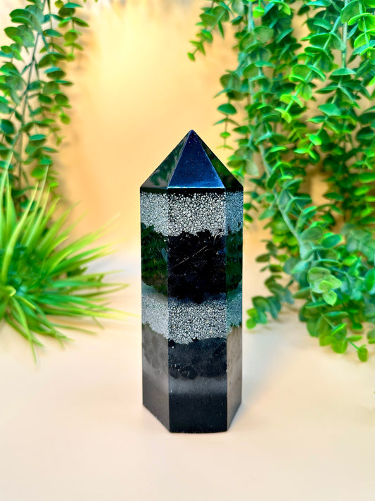 CAREER & LIFE PATH - Orgonite Tower - EMF Protector - Shungite, Black Tourmaline & Black Obsidian with Aluminum Metals