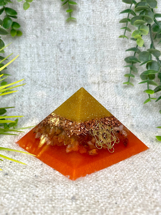 ENYA - Orgonite Pyramid - EMF Protector - Carnelian Crystal & Brass Metal