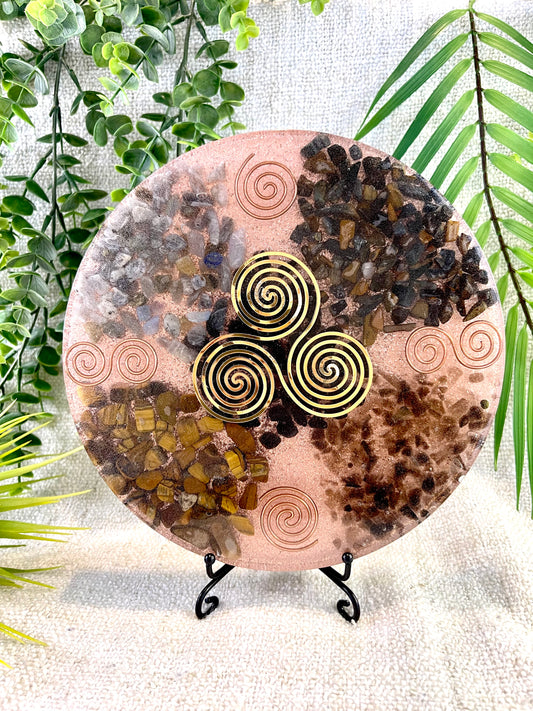Grounding Orgonite Charging Plate - EMF Protector - Labradorite, Blue Tiger's Eye, Smoky Quartz, Brown Tiger's Eye and Copper Metals