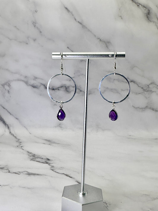Silver Hoop Earrings with Gemstones