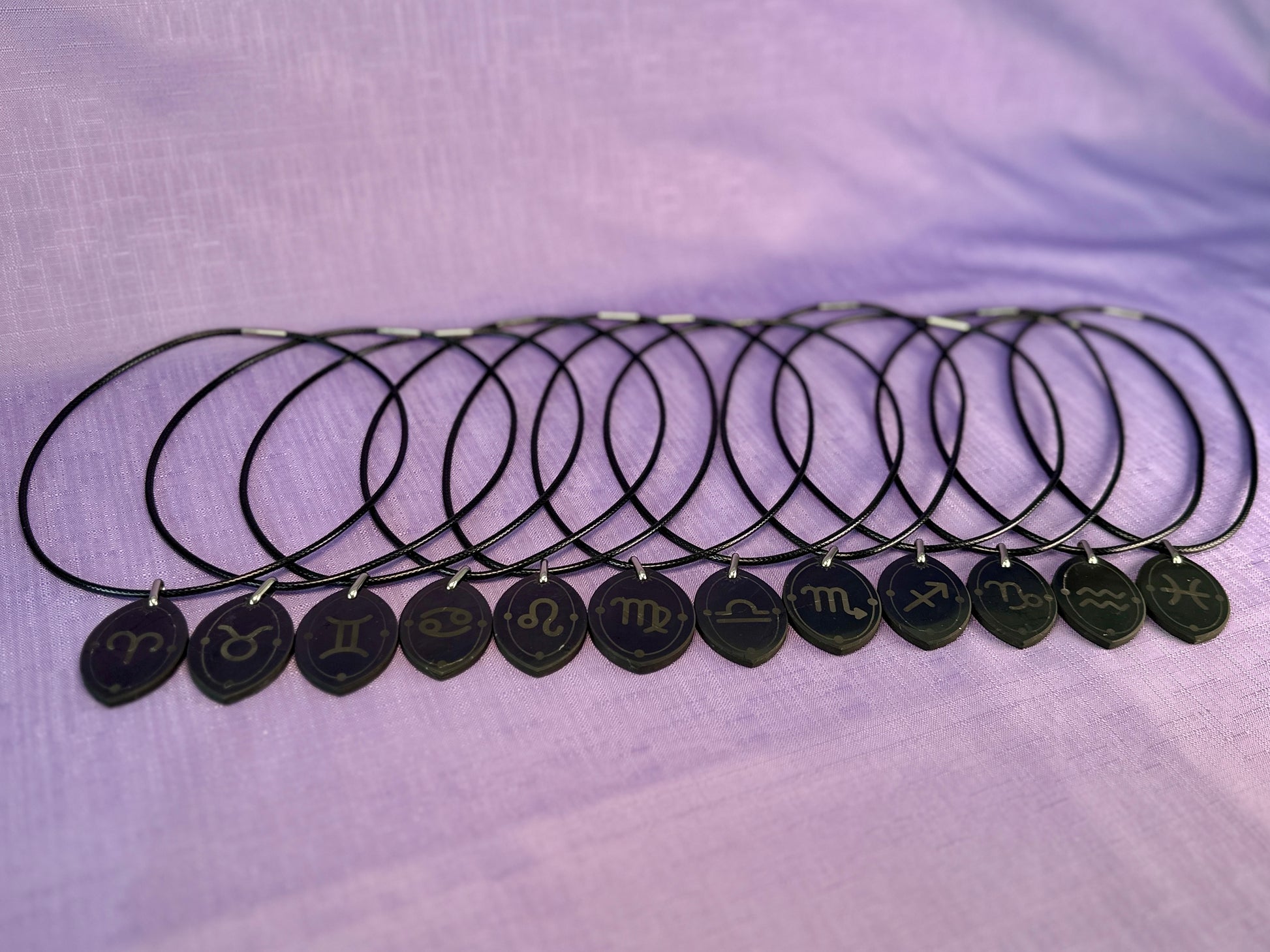 ASTROLOGY SHUNGITE PENDANTS! - EMF Protection - Hand Cut Genuine Natural Shungite Pendant High Quality Black Lustrous Gemstone from Russia