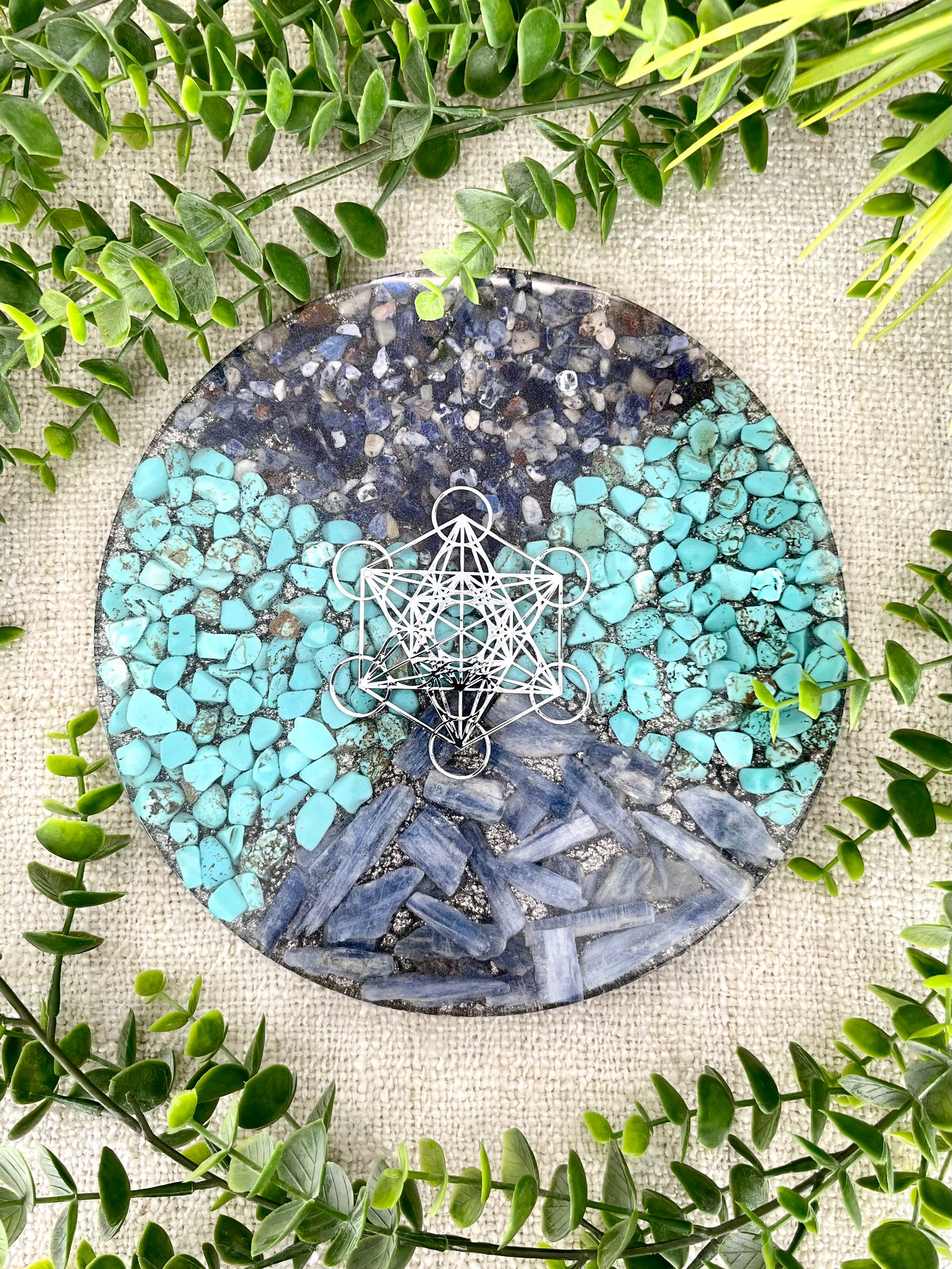 Peace and Calm Orgonite Charging Plate - EMF Protector - Turquoise, Sodalite, Blue Kyanite Aluminum Metals