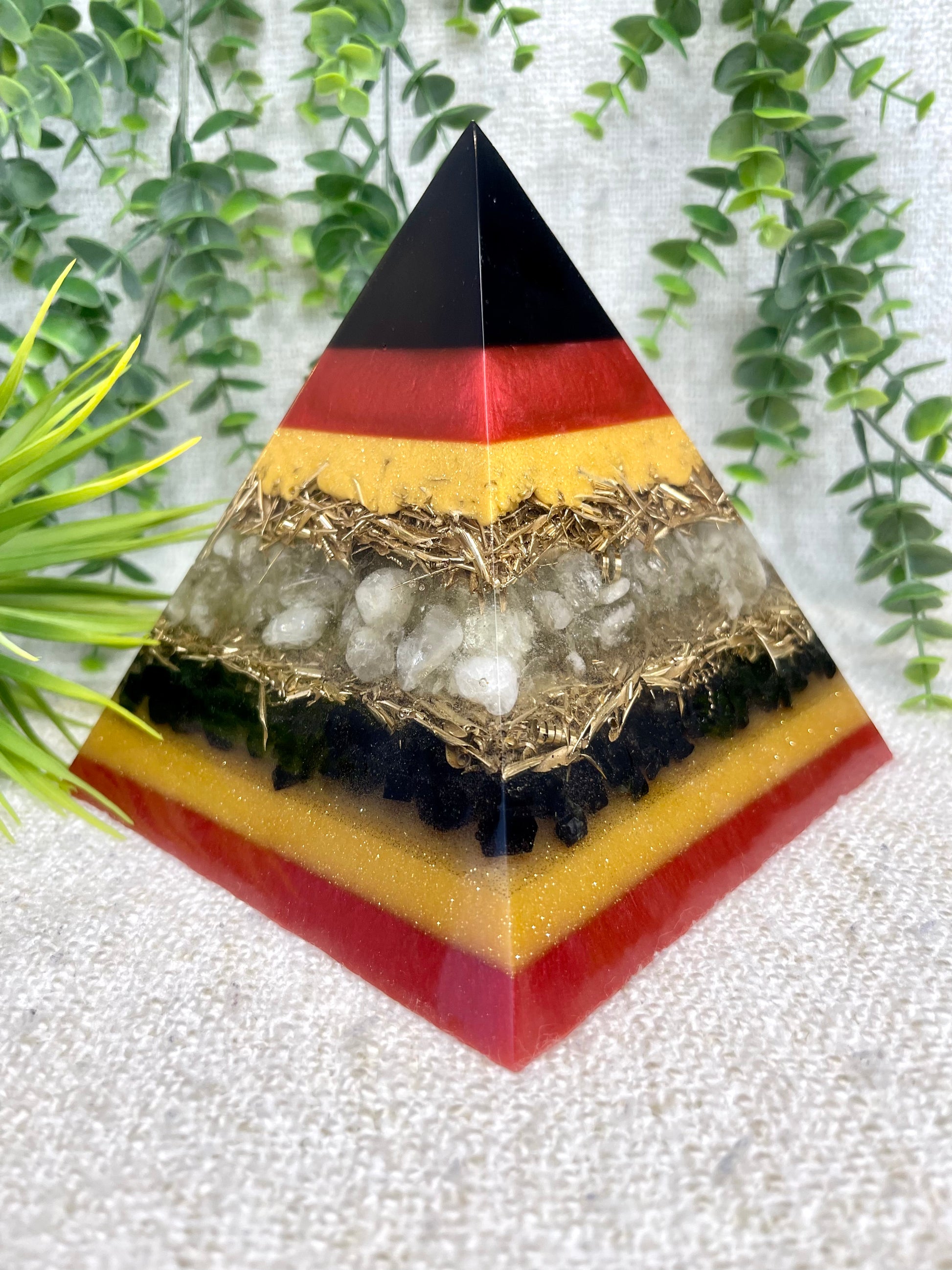 SKYLER - Sky Universal Virtual Learning Center Official Pyramid - EMF Protector - Citrine Crystals, Black Tourmaline and Brass Metals