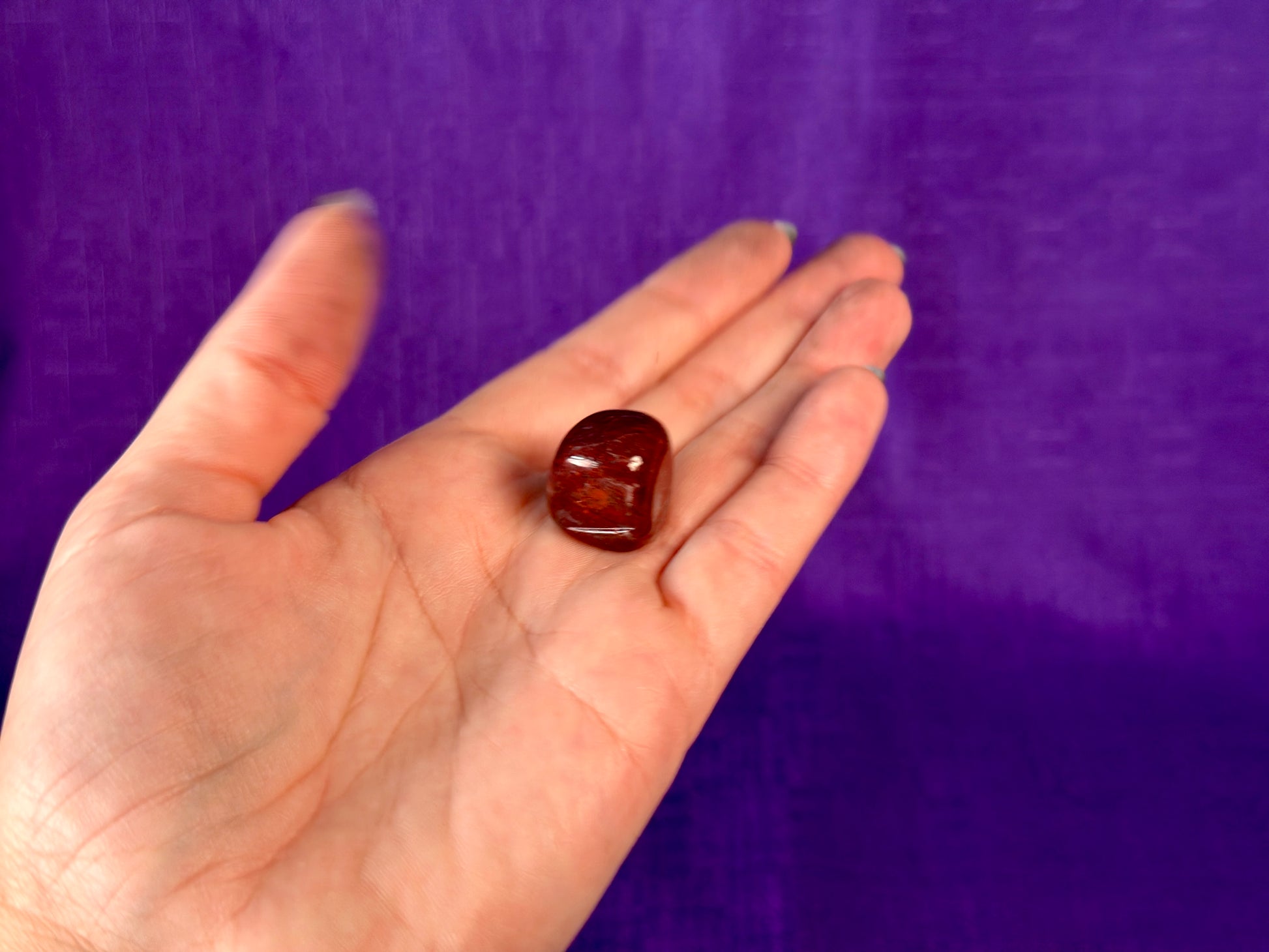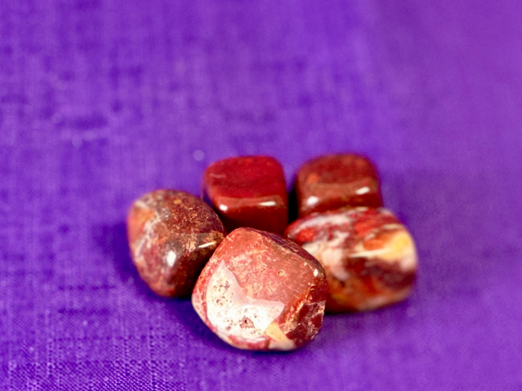 Brecciated Jasper: Grounds intentions into reality, giving strength, focus, and determination to pursue financial and creative goals. Tumble Stone, Medium, about 0.75 - 1" +/- size.