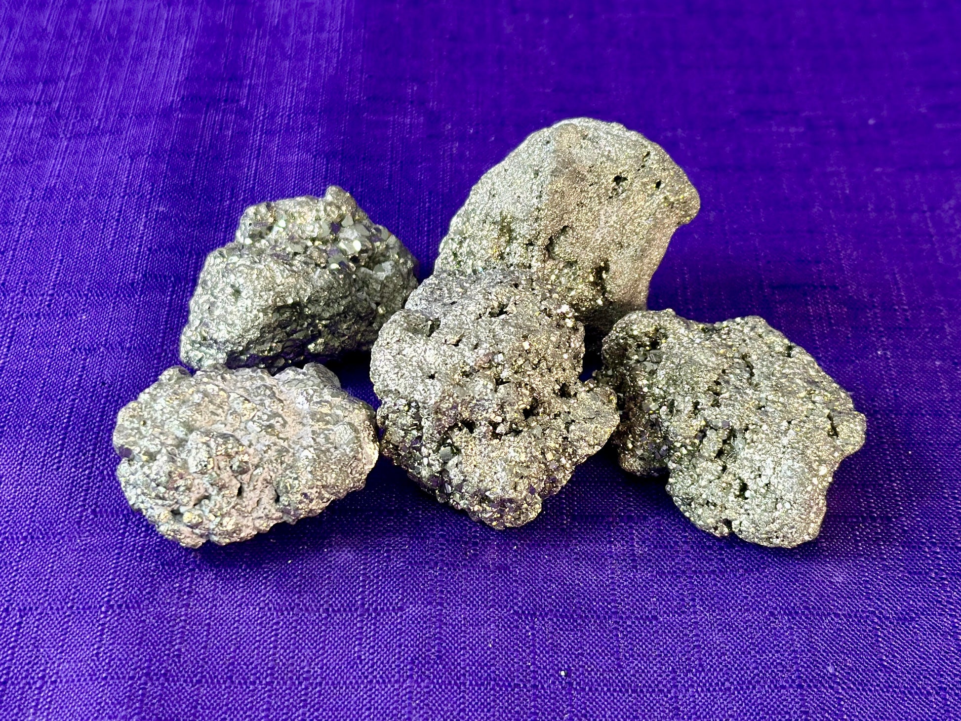 Pyrite: Known as “Fool’s Gold,” it draws wealth, success, and confidence while shielding against scarcity mindset. Grade A++ Rough Natural Pyrite Stones, Raw Pyrite, Natural Pyrite, Rough Pyrite, High-quality specimens. Size: 1-2.5 inches approx.