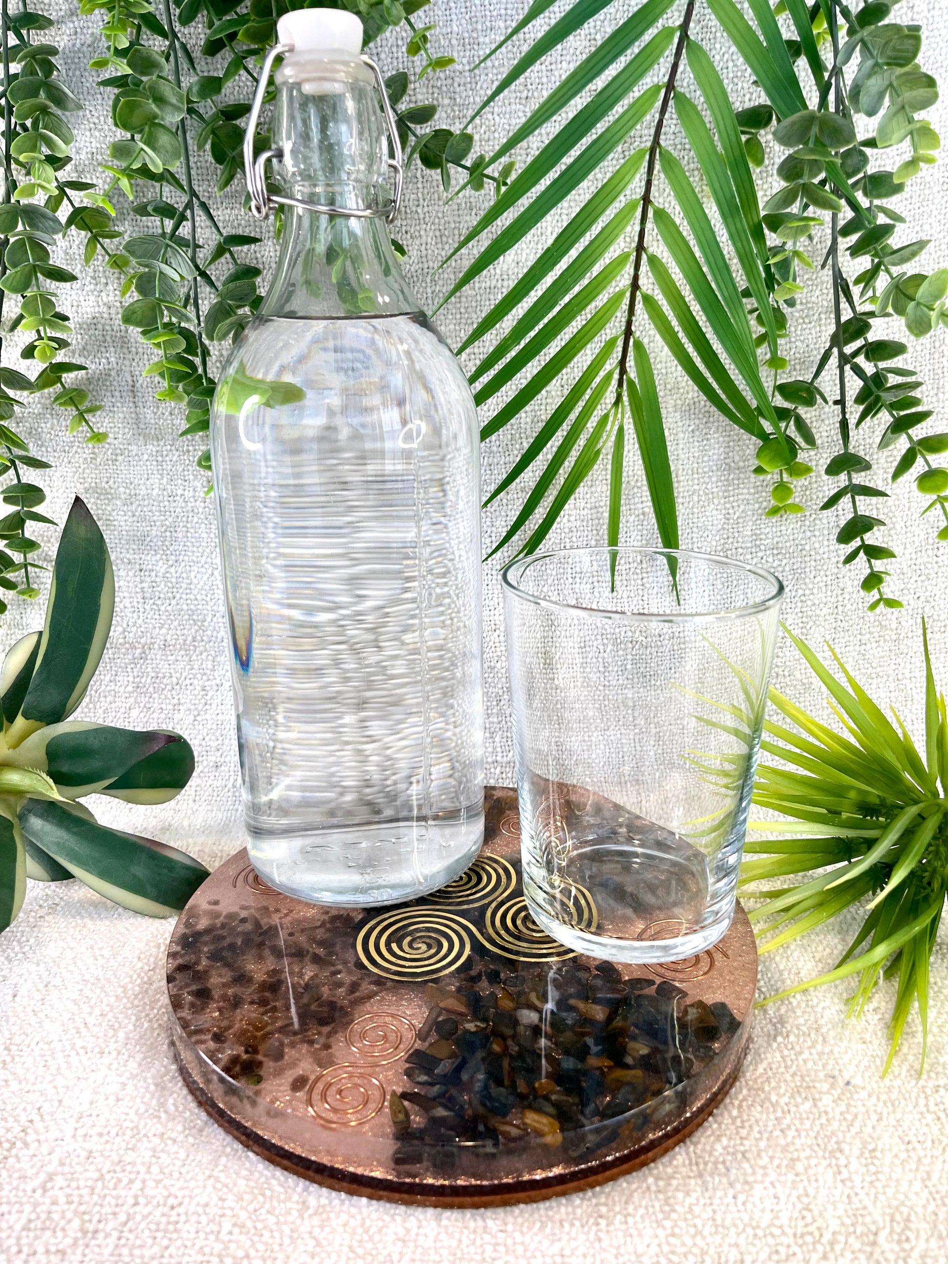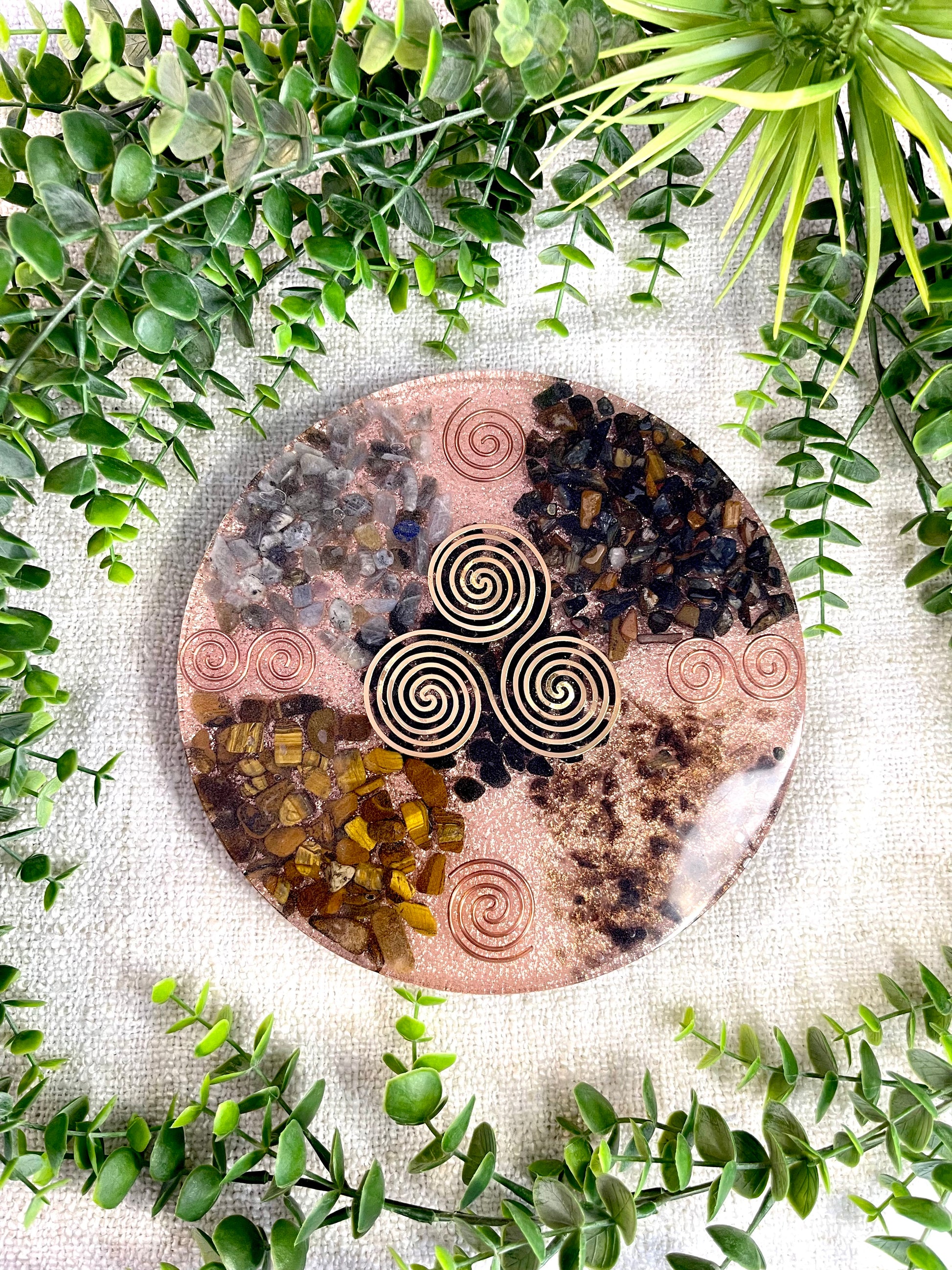 Grounding Orgonite Charging Plate - EMF Protector - Labradorite, Blue Tiger's Eye, Smoky Quartz, Brown Tiger's Eye and Copper Metals