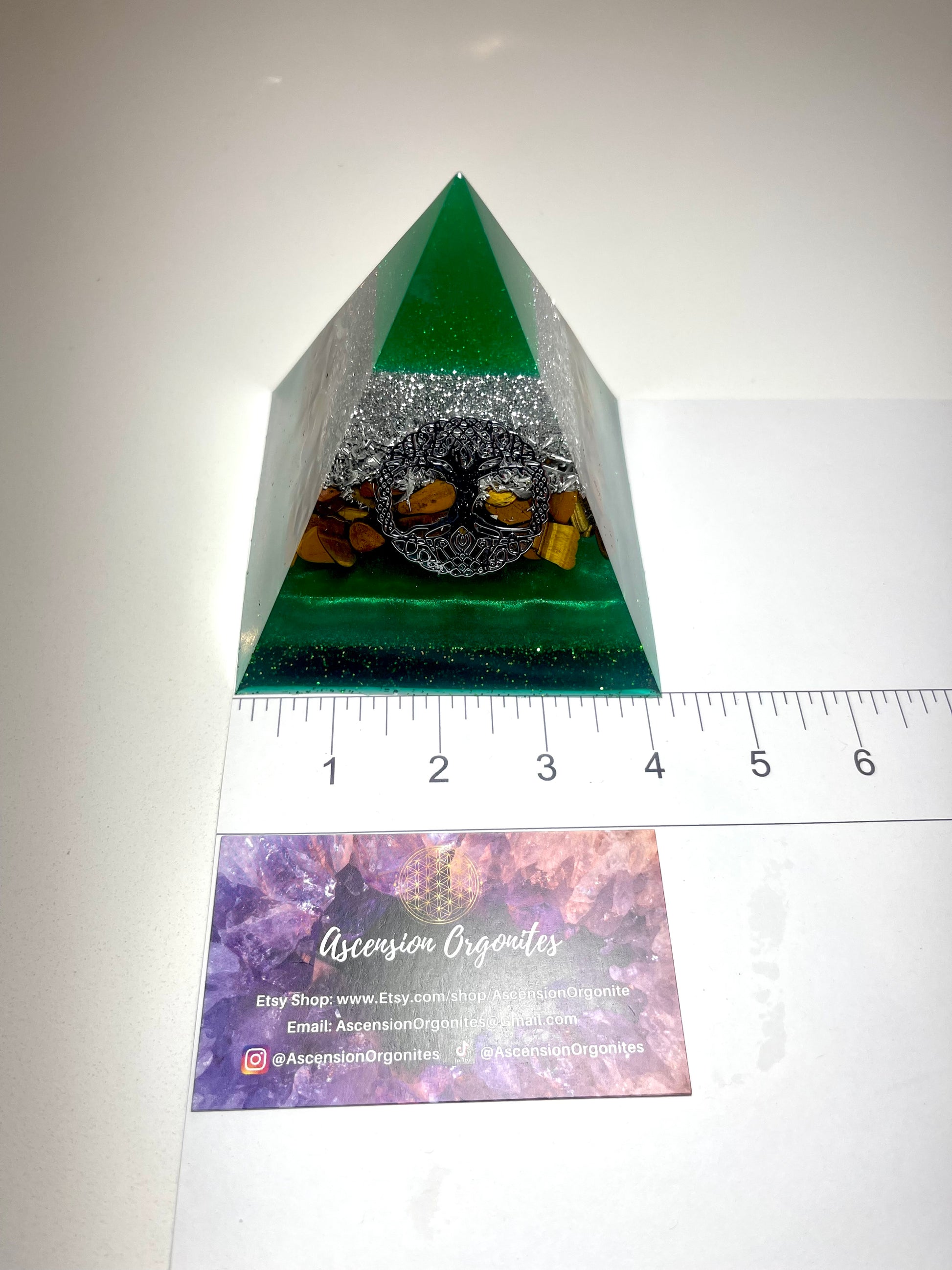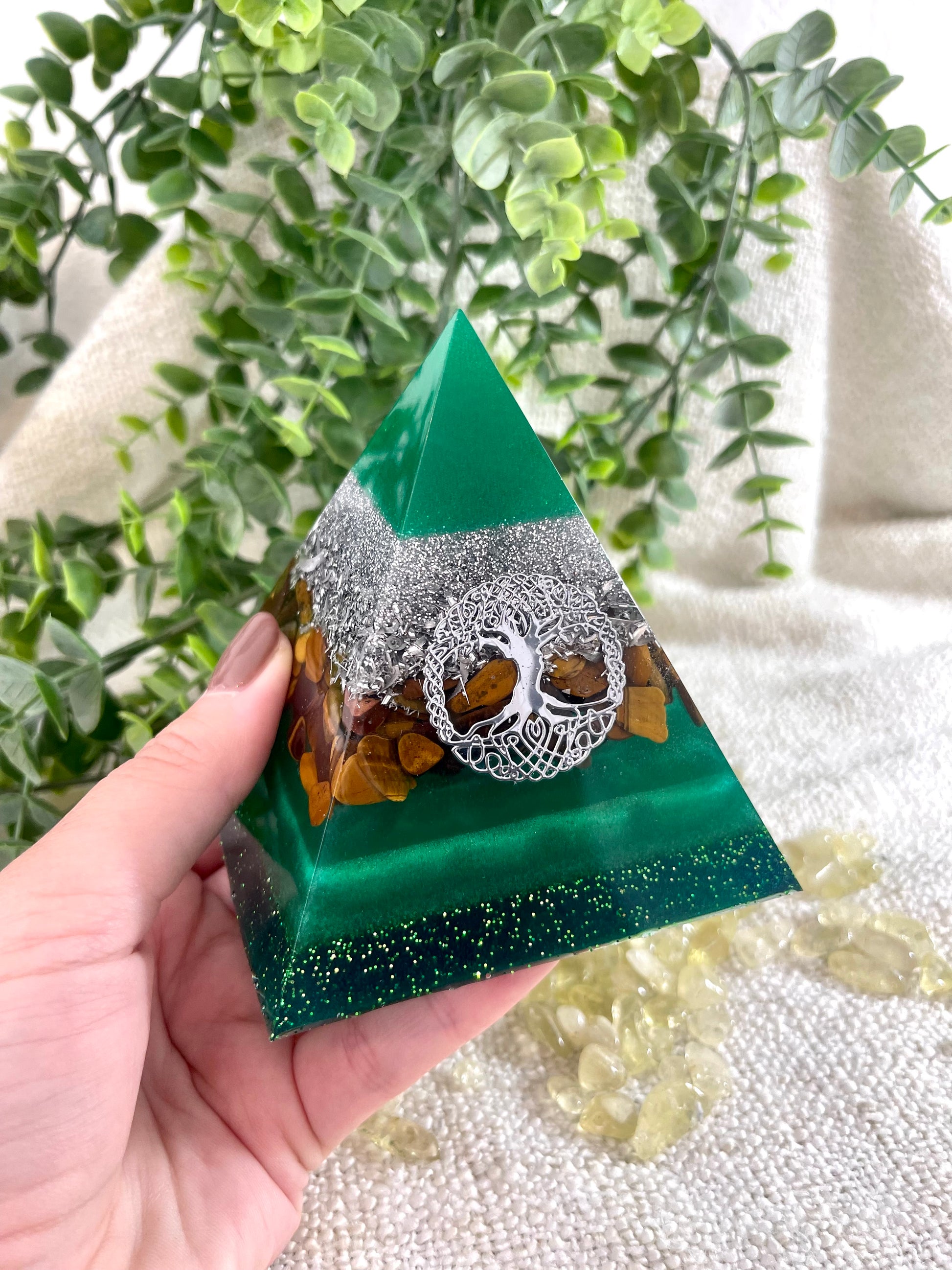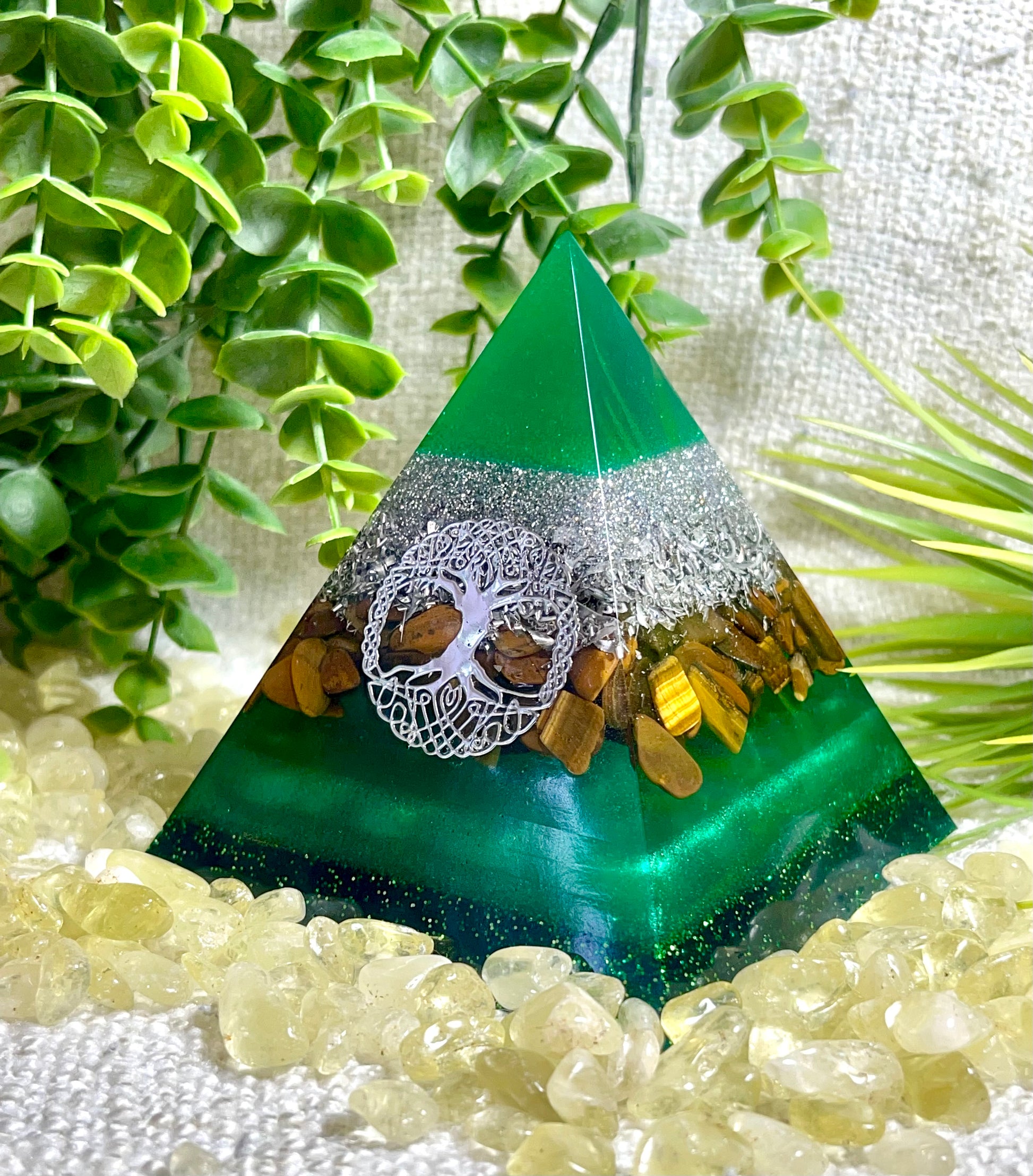 ESMERALDA - Orgonite Pyramid - EMF Protector - Tiger's Eye Crystal and Aluminum Metal