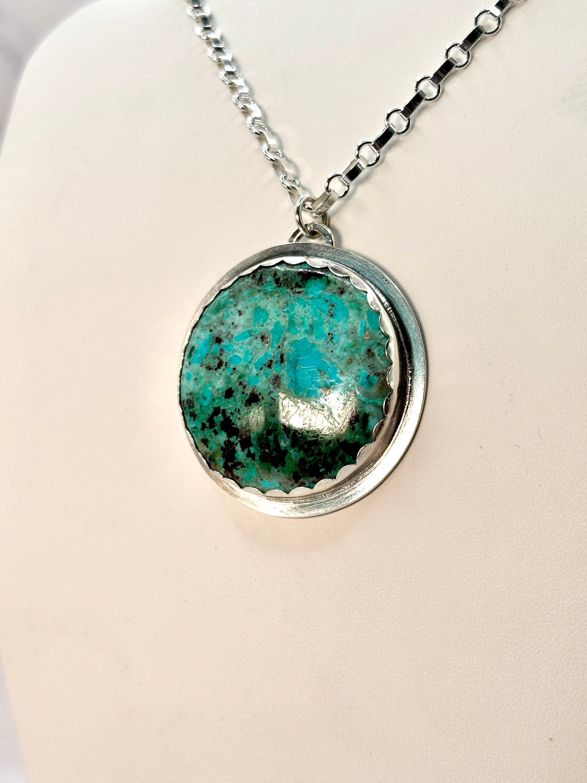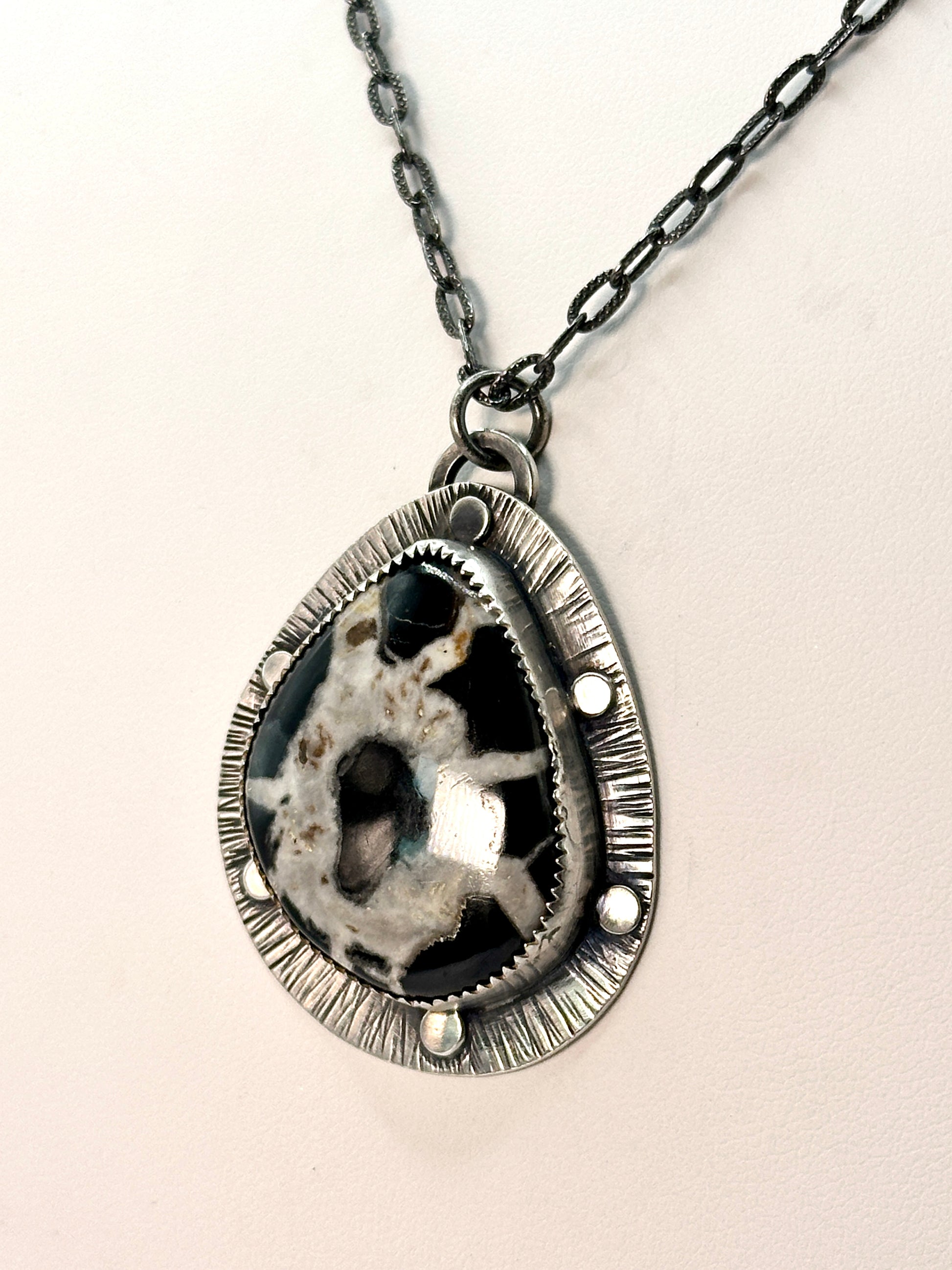 This Septarian (Dragon Stone) Necklace is gorgeous!!! The stone is magical and the sterling silver craftsmanship is so beautiful, some of the best silversmith work I have ever seen. The combination of the stone and sterling silver in this necklace is exquisite!!! I highly recommend this beautiful stone and sterling silver jewelry! It is truly a work of art and the magic is real!