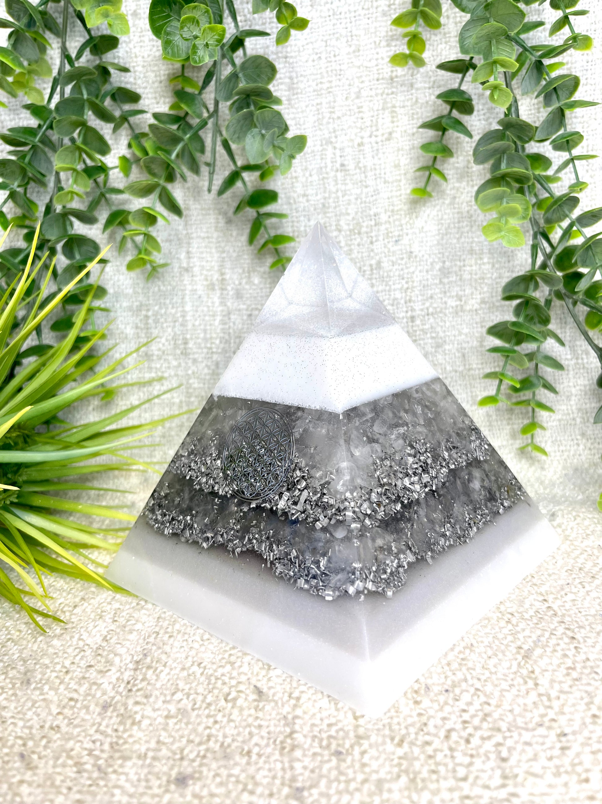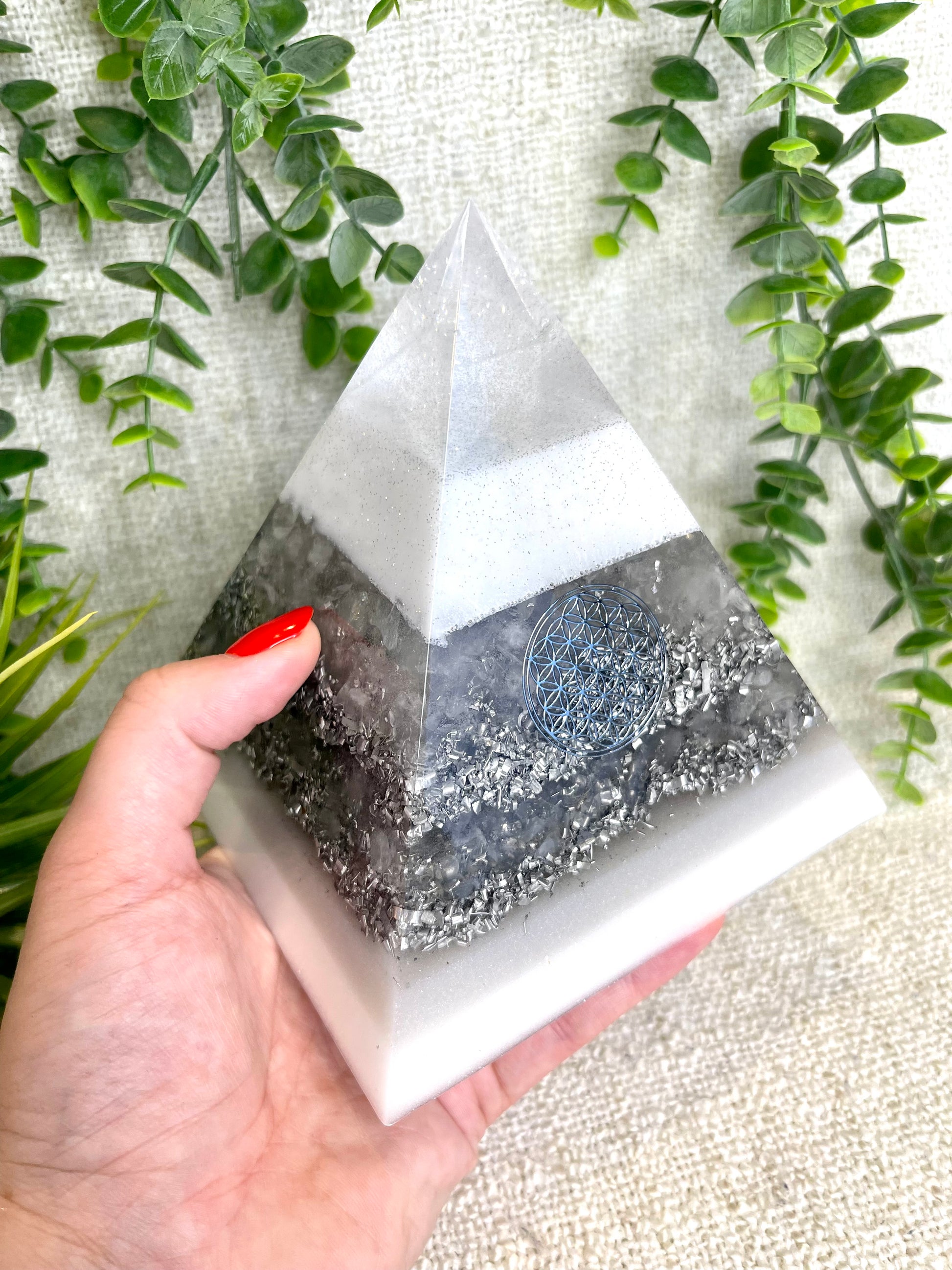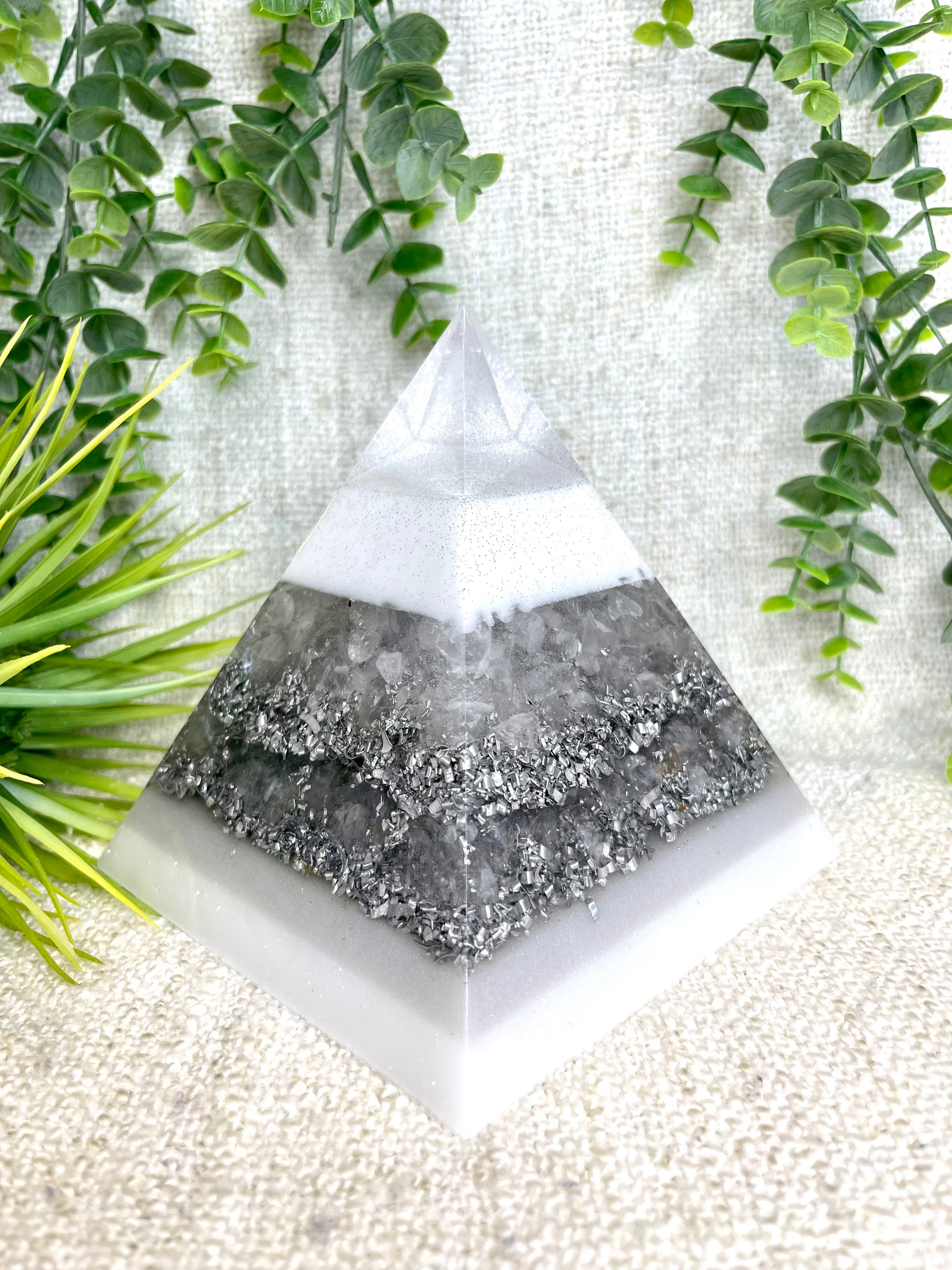 MONICA - Orgonite Pyramid - EMF Protector - White Quartz and Aluminum Metal