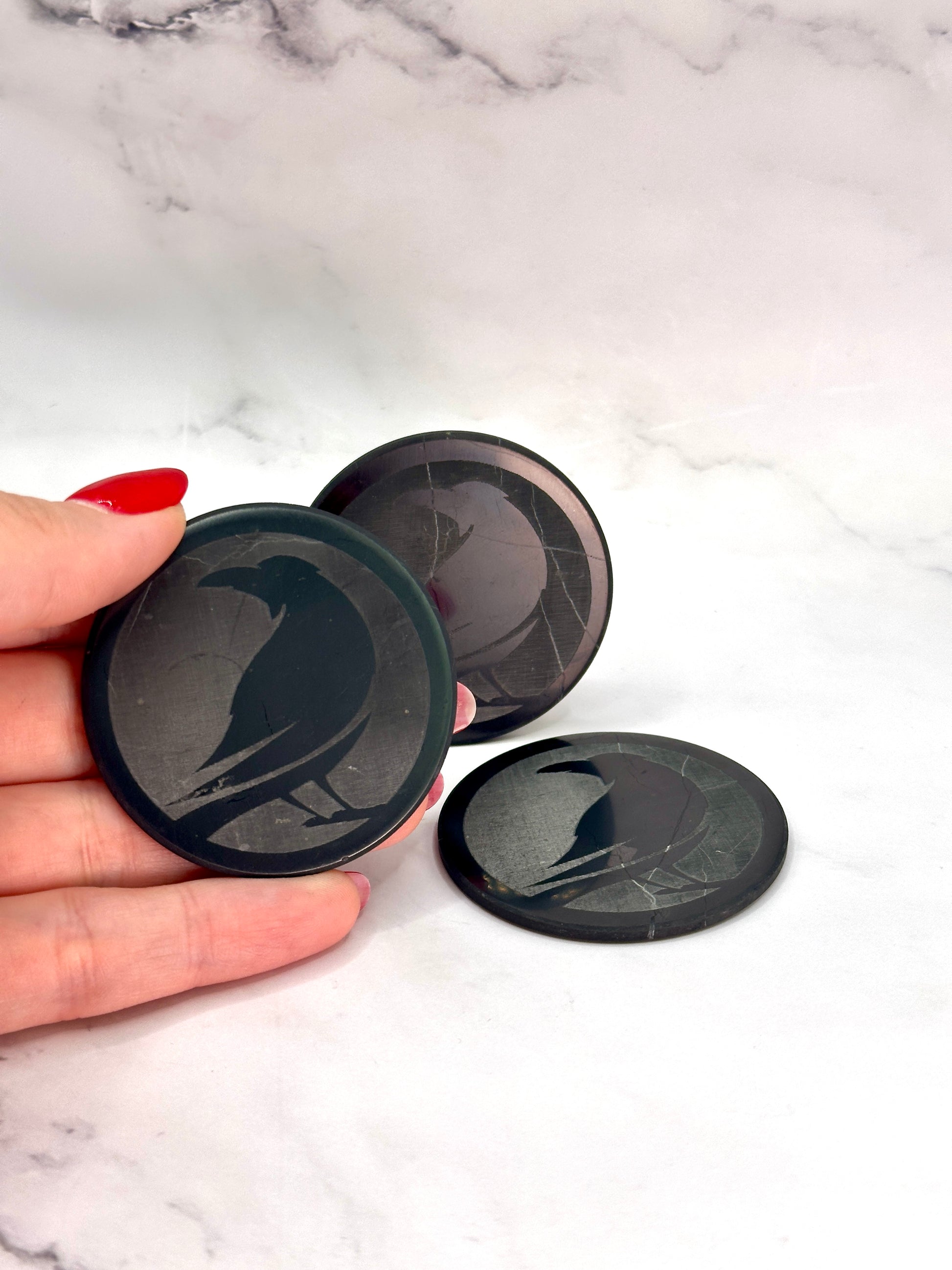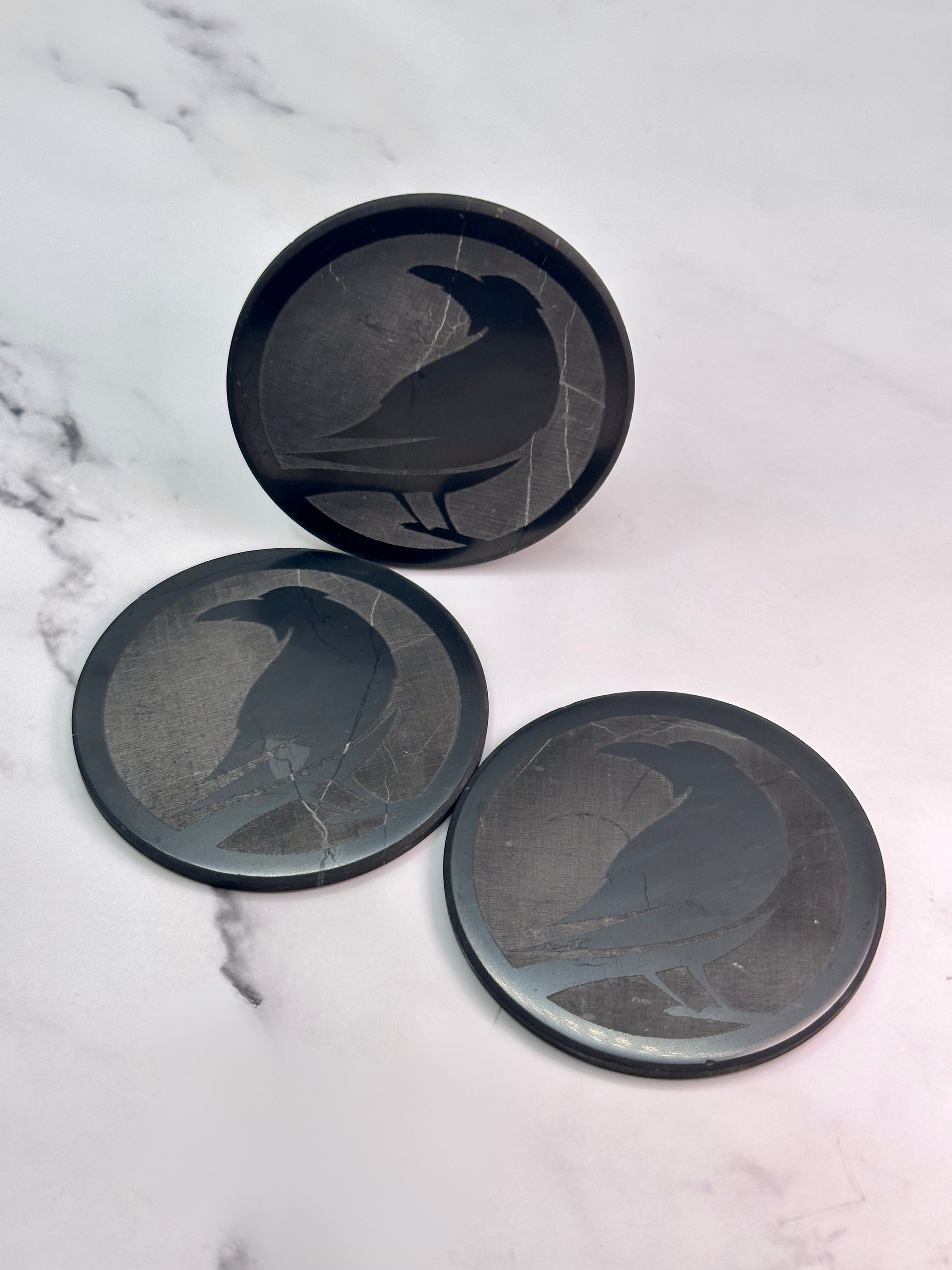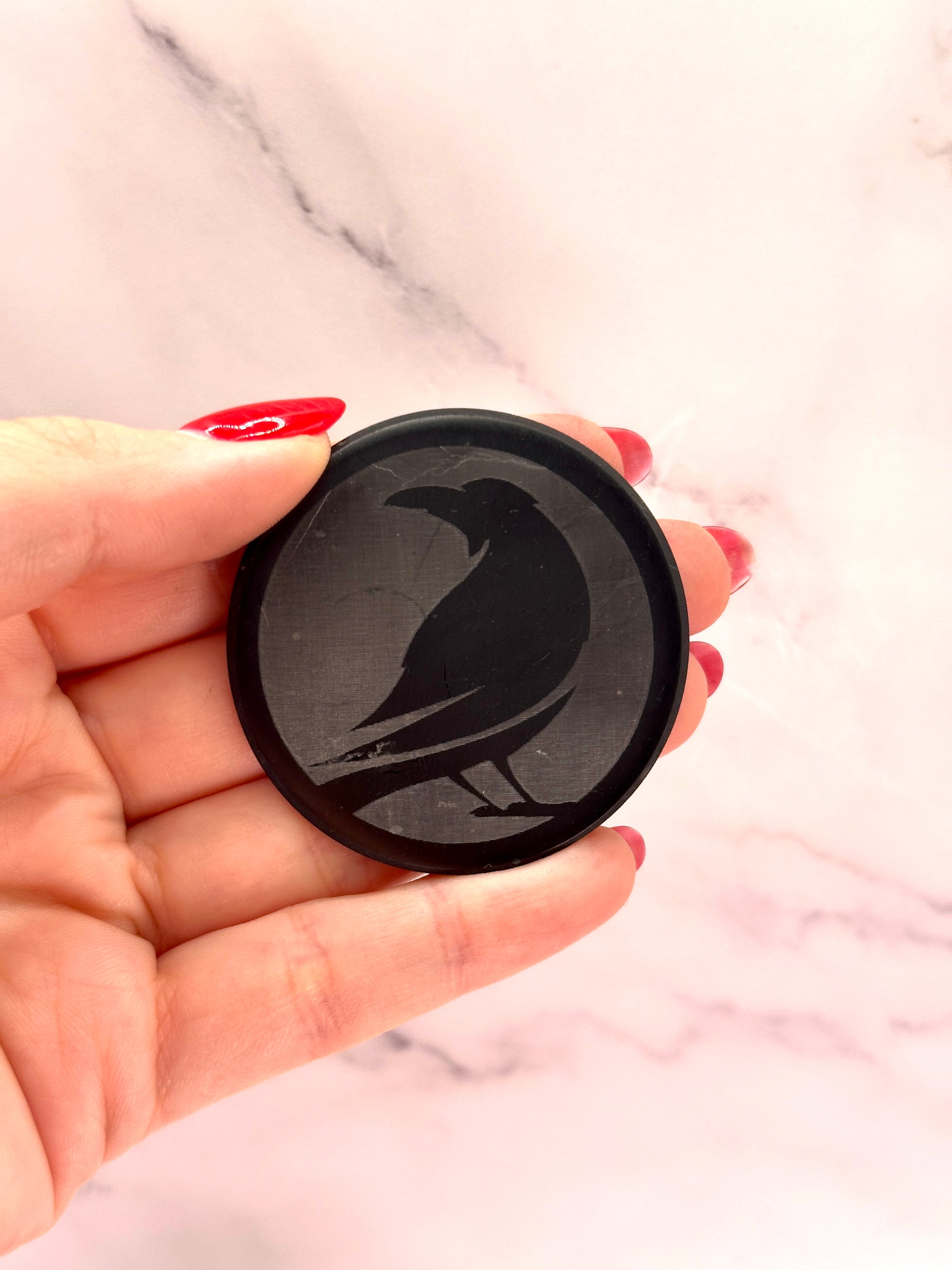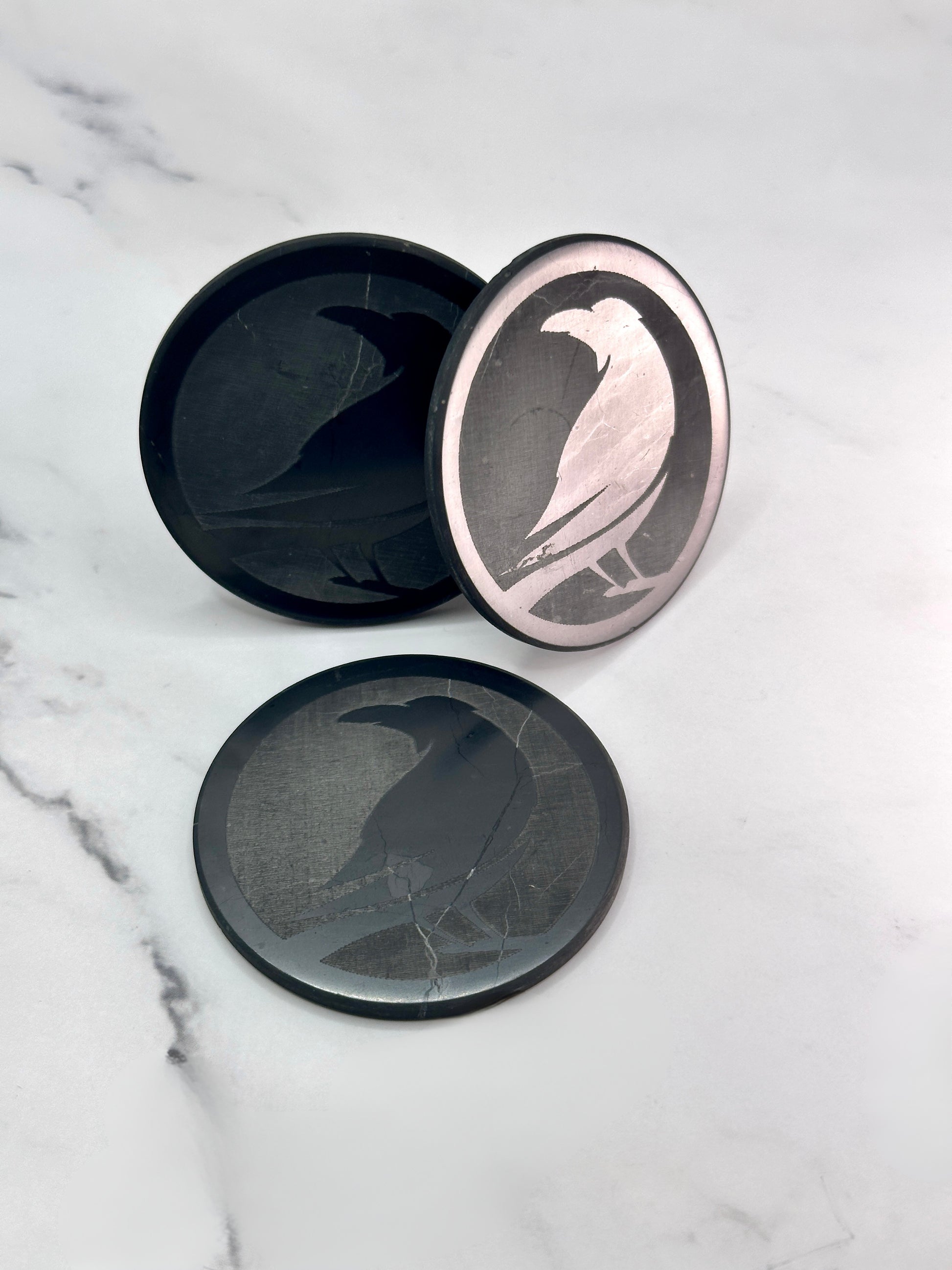 SENDING RAVENS SPECIAL EDITION SHUNGITE ROUND PHONE PLATES! - EMF Protection - Hand Cut Genuine Natural Shungite Phone Plate High Quality Black Lustrous Gemstone from Russia