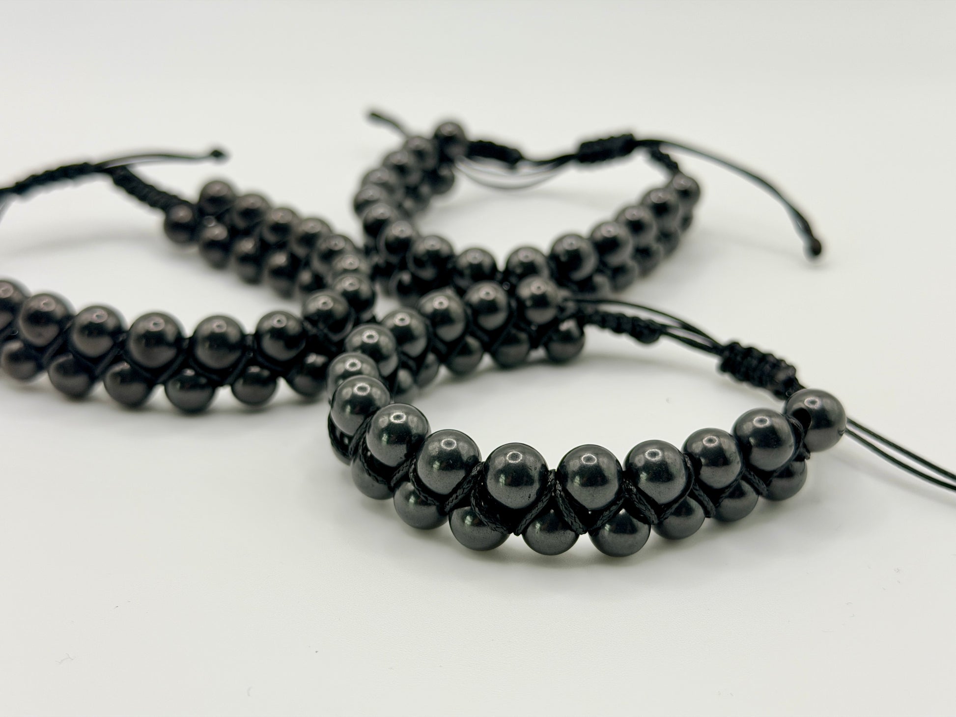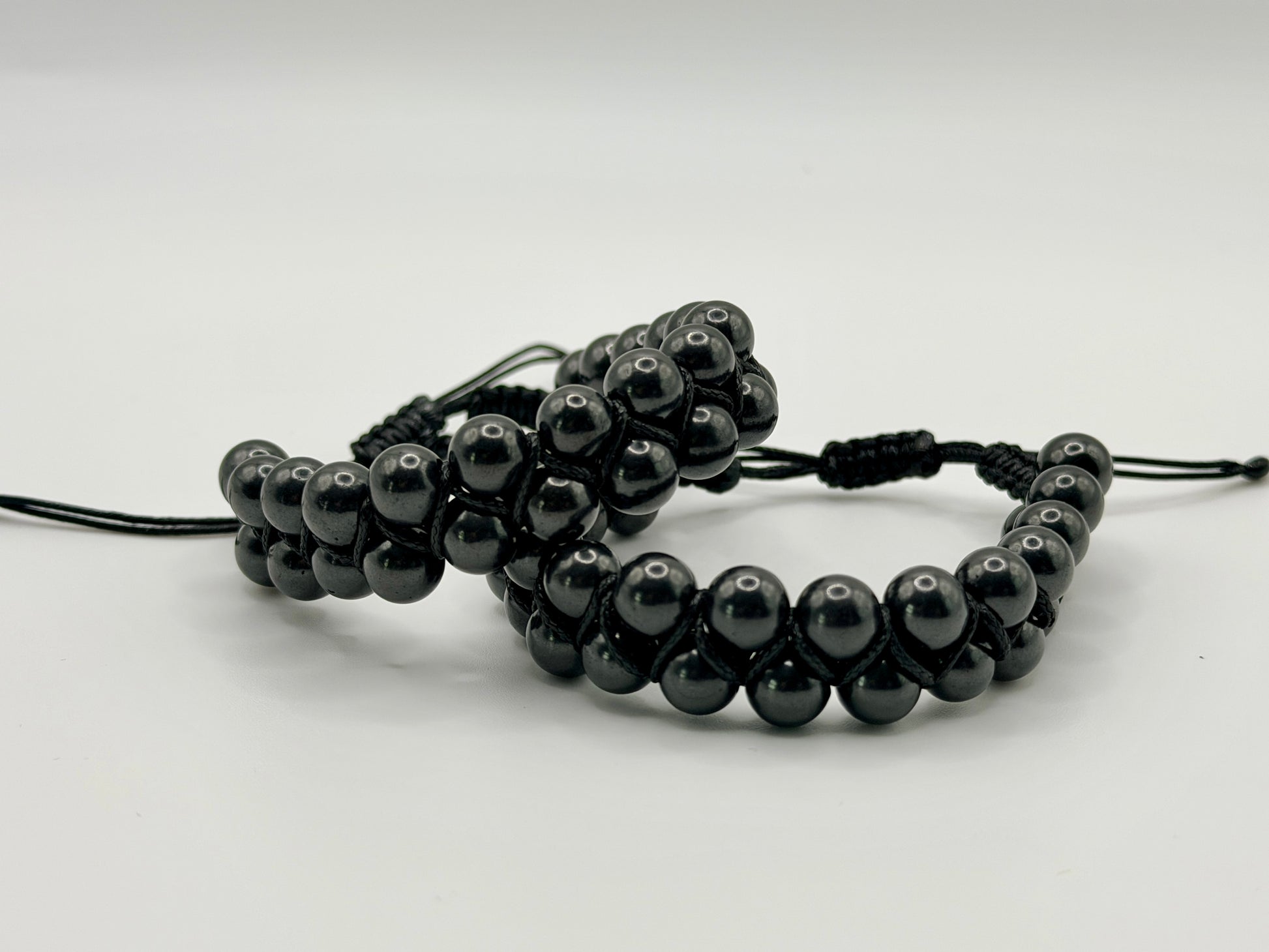 SHUNGITE DOUBLE MACRAME BRACELETS! - EMF Protection - Hand Cut Genuine Natural Shungite Bracelet High Quality Black Lustrous Gemstone from Russia
