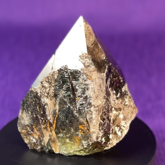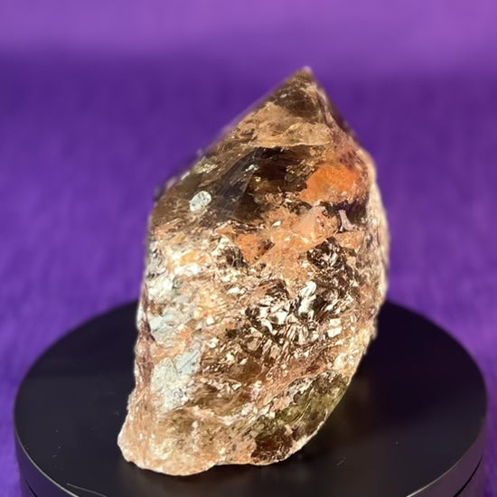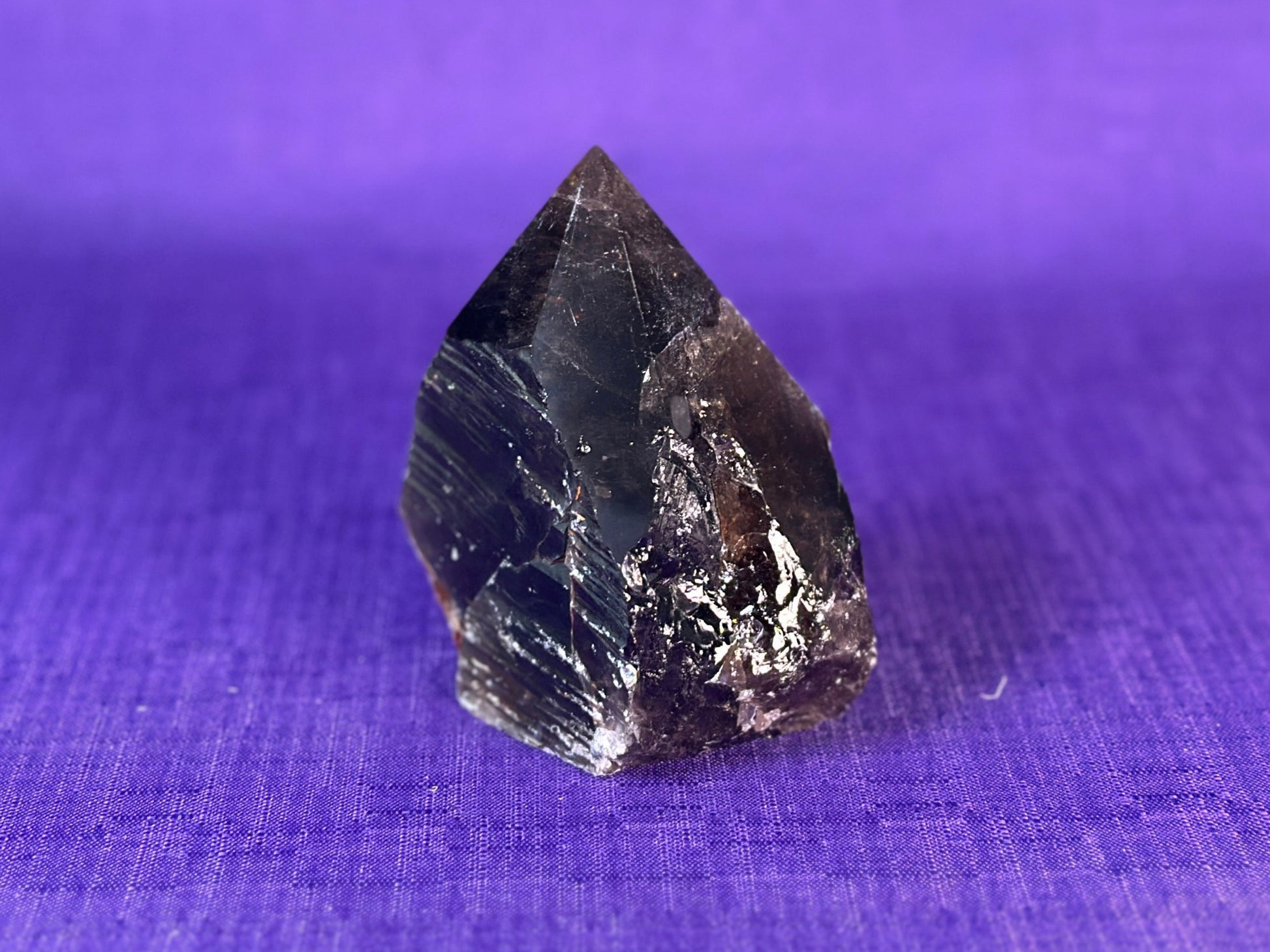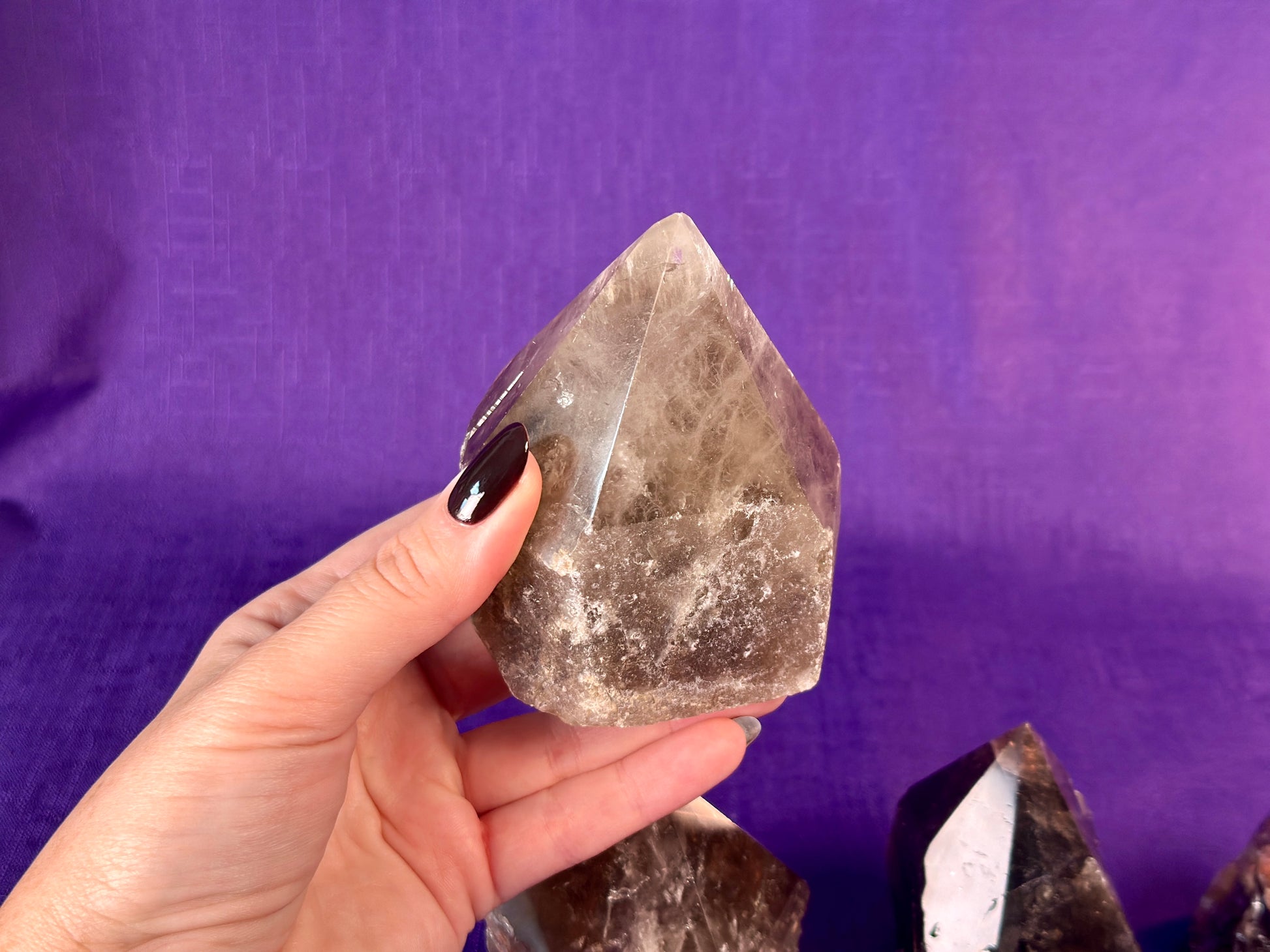 Smoky Quartz Top Polished Rough Point — Standing Smoky Quartz Crystal with Cut Base