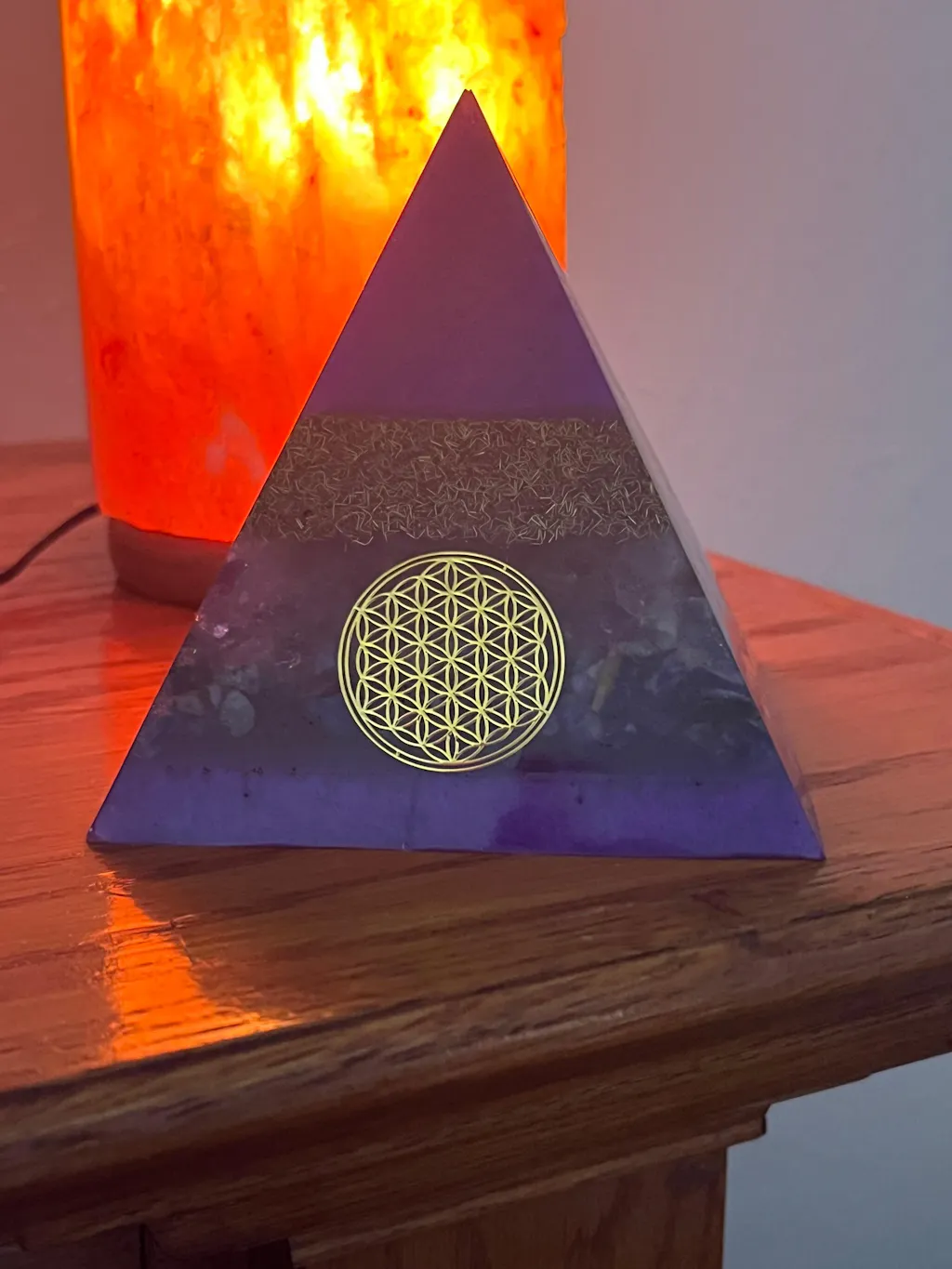 Hi, I recently won the Understanding Orgonite Pyramid on a Beyond the News show and I am sooo grateful… I just received it and it’s absolutely amazing and beautiful! Thank you sooo very much Carla, I honestly do feel that it’s helping to make my living room an even more peaceful and comfortable space to be in. My birthday is March 29th and it’s like a birthday gift from you and the Universe, I have never won anything and you’ve definitely given me a higher frequency in my life! I’m attaching a photo, I have it on my fireplace mantle next to my television and salt lamp, it’s dreamy… Thanks again and God Bless 😇💕